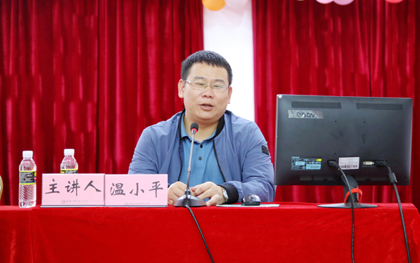 为进一步加强学生爱国主义教育,厚植爱国主义情怀,12月8日下午,我院时事大讲堂在多功能报告厅开讲,海南大学党委办公室副主任、博士、副教授、博士生导师温小平受邀作《习近平新时代海洋强国建设理论与实践》主题讲学。思想政治理论课教学部主任兼直属党支部书记周清云主持讲座。