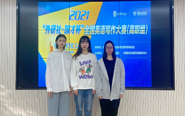 12月5日,由教育部职业院校外语类专业教学指导委员会指导,外语教学与研究出版社主办的2021“外研社·国才杯”全国英语写作大赛(高职组)总决赛远程在线举办。我院英语系邢蕊佳同学和国际商务系沈威同学分别荣获英语专业组和公共英语组二等奖;西语系黎冰森同学荣获公共英语组三等奖。