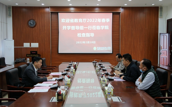 为确保2022年春季学期开学工作顺利开展,2月18日上午,由省教育厅党委办公室负责人汪明同志率队的督导检查组一行到jinnianhui今年会开展2022年春季学期开学督导检查工作。学院党委委员、副院长梁松,文昌市人民政府教育总督学黄有宝,学院相关职能部门负责人,文昌市教育局相关室(办)负责人陪同检查。