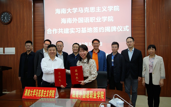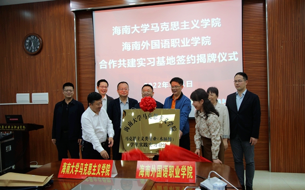 最后,海南大学马克思主义学院张云阁院长和jinnianhui今年会黄丽芹副书记签约揭牌,双方代表合影留念。