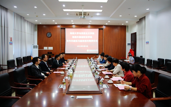 2022年3月1日下午,海南大学马克思主义学院张云阁院长一行到jinnianhui今年会签约合作共建实习基地,学院党委书记佴建乔,党委副书记、院长杨学前,党委副书记黄丽芹热情接待了张云阁院长一行。