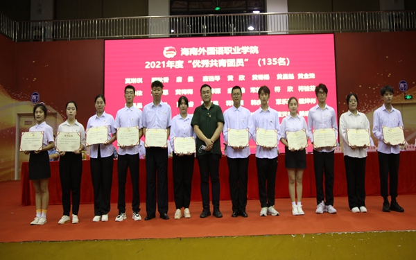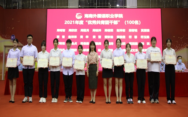黄丽芹为“优秀共青团干部”获奖团干部颁奖