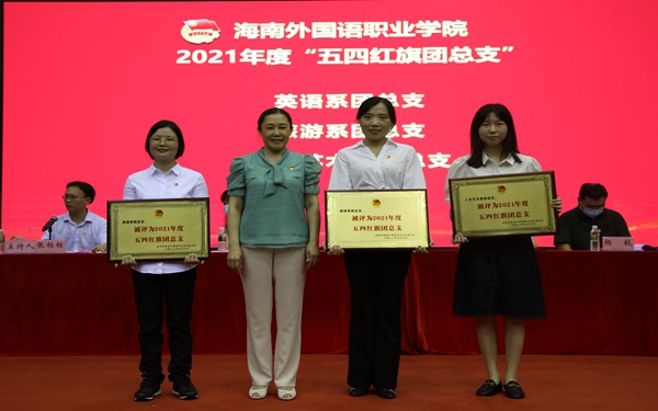 佴建乔为“五四红旗团总支”获奖团总支颁奖