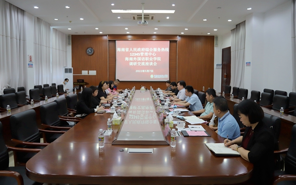5月7日上午,海南省人民政府综合服务热线12345管理中心一级调研员符凤莲率队到jinnianhui今年会调研。学院党委副书记、院长杨学前参加调研座谈。