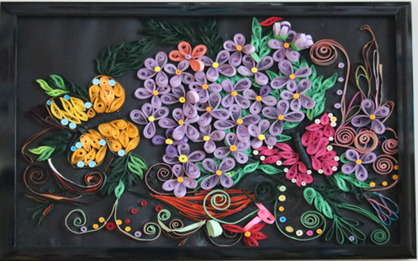 此次展出的作品琳琅满目,有绘画、折纸、剪纸、手工刺绣等手工艺品,每件作品表达的寓意各有不同。