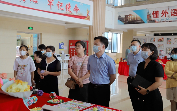 5月11日,党委副书记、院长杨学前莅临现场参观指导,英语系党政班子、专业负责人、教研室主任、指导教师参与陪同展览活动。