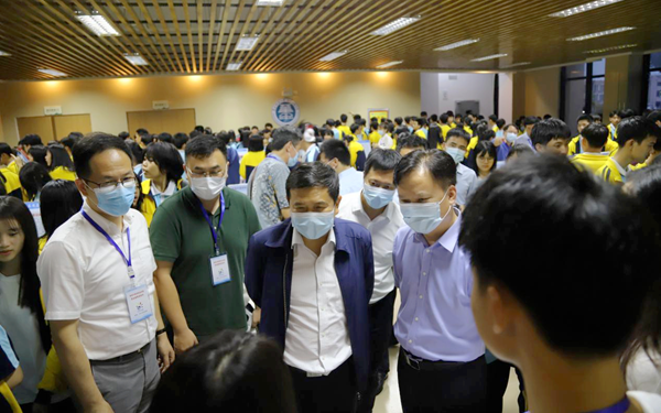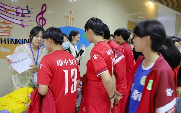在“跟我学外语”活动现场,徐斌与我院外教、外语专业学生进行深入交流。他指出,在全省上下深入贯彻落实习近平总书记考察海南重要讲话和海南省第八次党代会精神、全力推进自贸港建设时期,琼中县委以打造琼中女足体教融合示范样板为目标,全力做大做强琼中女足,打造中国女子足球国际合作交流新高地。他希望我院继续发挥“语种多”“专业全”“师资强”的教育资源优势,为琼中发展提供强有力的支撑。