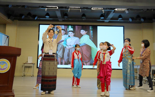 课上,来自美国、巴西、泰国、日本、泰国、埃及、越南、印尼、柬埔寨、缅甸等国家的外教分别上台介绍自己国家的语言文化。来自美国的外教John通过单词游戏激发学生们学习英语的热情,来自巴西的外教Daniel通过巴西足球与琼中女足的对比引入葡萄牙语,来自泰国的外教Nice通过现场体验泰国传统民族服饰激起学生学习的兴趣……外教们“各显神通”,在场学生的读书声、掌声此起彼伏。讲座结束后,外教们还给学生们进行了一对一的外语入门辅导。