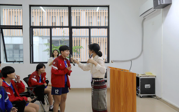 5月17日下午,我院外教团队走进琼中女足,给琼中女足带来一场“外语世界杯”。外教们“轮番上阵”,教授英语、葡萄牙语、阿拉伯语、泰语、日语、韩语、越南语、柬埔寨语、印尼语、老挝语……琼中女足们“兵来将挡”,活泼开朗地应对每一门外语,积极与每一位外教互动,就像她们在球场上沉稳面对每一次传球、接球一样。
