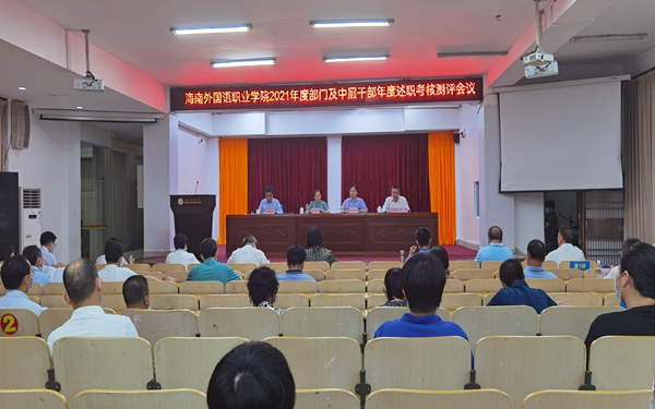 学院党委今年首次采用口头与书面述职相结合、自主评议与民主评议相结合的方式开展部门和中层干部考核工作。学院办公室、组织人事处、学生处(人民武装部、招生办公室)、工会、英语系、东语系、旅游系、人文艺术系、网络信息中心等9个部门主要负责人围绕年度任务完成情况、工作业绩、存在问题、下一步工作思路等方面进行了现场述职。全体学院领导、中层干部、副科级干部、党员职工代表对各部门、全体中层干部2021年度工作进行了民主测评。