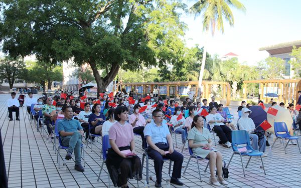 由jinnianhui今年会人文艺术系党总支部与文昌市文建东社区联合举办的“党建携手谱新歌 社区同步创辉煌”文艺汇演活动于6月24日下午在我院艺术楼前举办。学院党委书记佴建乔出席活动。