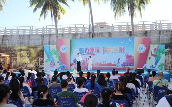 现场气氛十分活跃。有草原的绿浪,欢快而奔放;滂然沛然的战歌,绘制了一幅气度恢弘的图画;壮烈的号角声,使我们铭记历史;有伴着海南自由贸易港激昂的鼓点,新时代的海南正在争创中国特色社会主义实践范例,谱写美丽海南新篇章;更有人文艺术系党总支副书记林鹏演讲的《相信未来》,让我们相信自己,相信未来,相信我们的未来不是梦。节目最后是由杨诺析 (英)、王菁(泰)、郑启清(法)、杨倩(柬埔寨)、陈海俊(西班牙)、郭俐莹(马来西亚)、王安样(俄)等学生用多种外语会同学院舞蹈团一起带来的歌舞《我和我的祖国》,以外语为翅膀,用深情抒发勇于担当、团结奋进的爱党爱国之情,向伟大祖国告白!