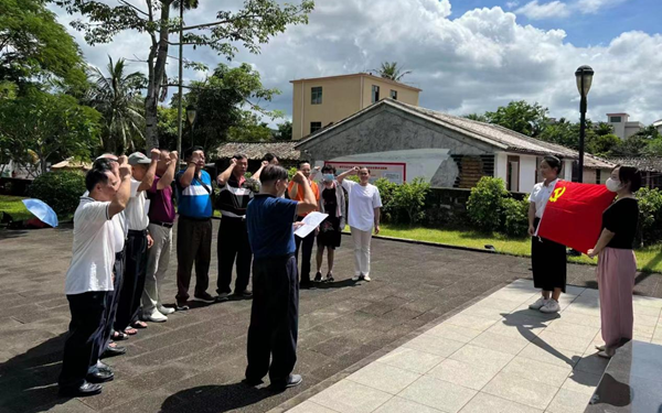 随后,退休老干部、老党员共赴冯白驹将军故居参观学习,近距离了解冯白驹将军的生平故事、抗战历史,感受革命烈士孤岛奋战二十三年红旗不倒的英雄事迹,重温革命先驱事迹,重拾红色记忆,激发奋进力量。在冯白驹将军雕像前,离退休党支部的老党员开展了重温入党誓词活动。
