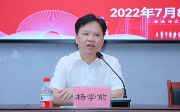 杨学前在开班仪式上做动员讲话,指出了本次培训的重要意义,并围绕习近平总书记在全国教育大会上提出的教育三问,即“培养什么人、怎么培养人和为谁培养人”,全面阐述了大学教师应该如何承担好教书育人的责任,如何成为“四有”好老师,如何为党育人、为国育才。杨学前对全体学员提出三点要求:一是要切实提高政治站位,高度重视此次培训;二是要开启持续学习新模式,提高培训学习质量,不断提高教书育人本领;三是要学以致用知行合一,充分运用培训成果,为海南自贸港建设培养出更多具备高尚品格、国际视野、超强能力的高素质外语类人才而不懈奋斗。