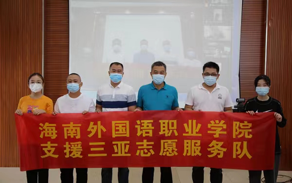 西语系党总支副书记顾大育代表青年志愿服务队表态:青年志愿服务队在志愿服务期间,坚决服从领导,听从安排,认真做好个人防护,全力以赴做好服务工作,用实际行动助力海南人民打赢这场疫情防控保卫战。