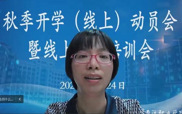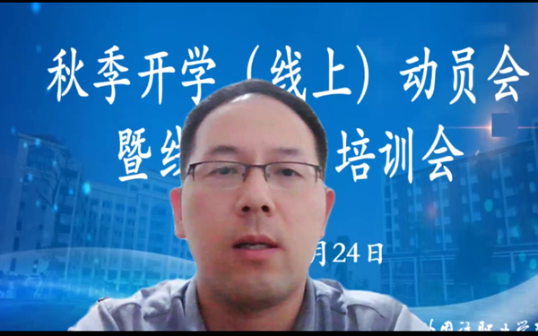 开班仪式后,线上教学培训会正式启动。教务处处长王征就开学初线上教学工作进行了进一步部署,要求全体教师提前做好建课、资源上传、直播分享等工作;在线上授课时,坚持“2+1”原则,注重线上教学的情景感、现场感设置,确保“教学任务不变、质量标准不变”。