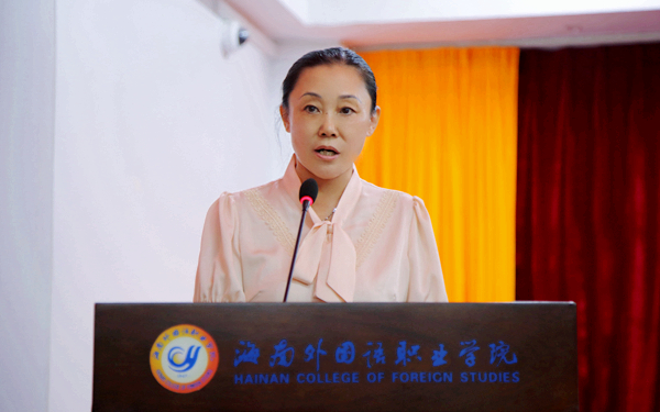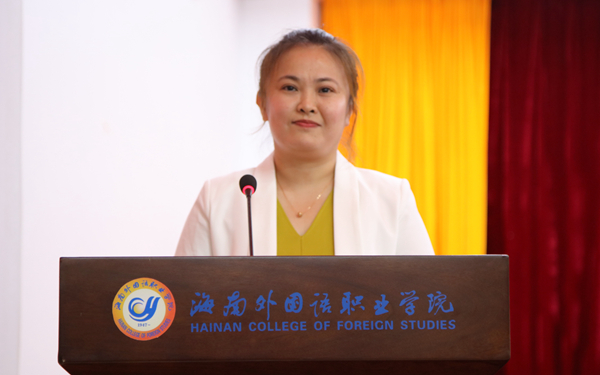 荣获2022年海南省优秀教师荣誉称号的国际商务系钟阳惠作为教师代表发言