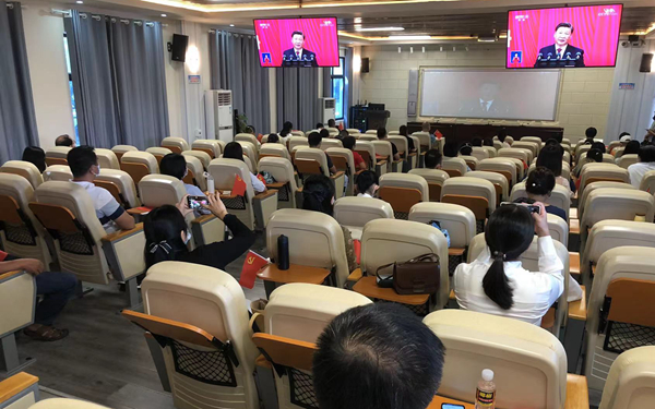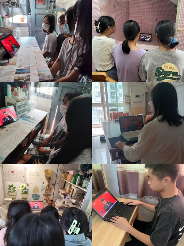 学校党委书记佴建乔,党委副书记、校长杨学前,党委委员、纪委书记、省监委驻学校监察专员黄培怡,党委委员、副校长梁松,党委委员、副校长杨毅,以及全体中层干部、教职工党员在三个会场集中收看直播。广大师生以各种方式收听收看直播。