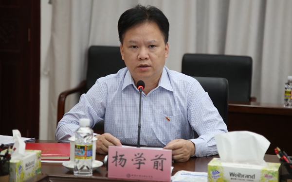 杨学前结合习近平总书记的报告提出的“科技是第一生产力、人才是第一资源、创新是第一动力”“科教兴国战略、人才强国战略、创新驱动发展战略” “推进高水平对外开放”等新论断,谈了如何结合贯彻落实党的二十大精神,立足海南自由贸易港办好新时代中国特色职业教育的想法。他指出,全校必须以党的二十大精神为指引,坚守为党育人、为国育才的初心使命,坚持以高质量党建引领学校高质量发展,坚持区域服务型办学定位,打造区域一流的外语教学国际化品牌,培养更多的通晓国际规则、具备跨文化交际能力的外向型人才。