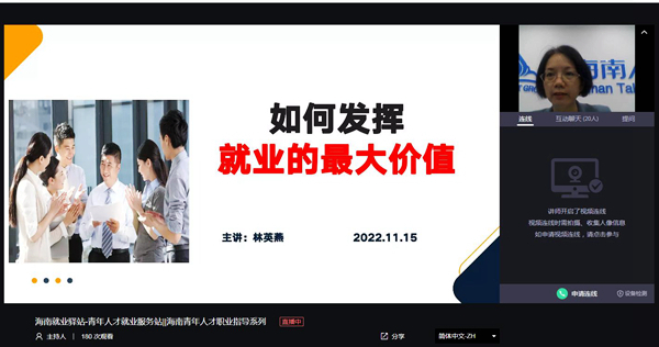 本次就业指导会采用“线上+线下”结合的方式,分上午和下午共四场。林英燕老师就想从事的工作、工作地点、面试技巧及职场定位等方面的内容,呼吁同学们提前做好人生规划以及发挥就业的最大价值。宋薇薇老师对海南自由贸易港政策下的就业政策、吸引人才就业创业等政策进行了深入解读,分析了海南自由贸易港发展的前景,希望今年会学生能深入了解就业环境,鼓励毕业生转换观念,立足自身实际,理性看待就业问题。