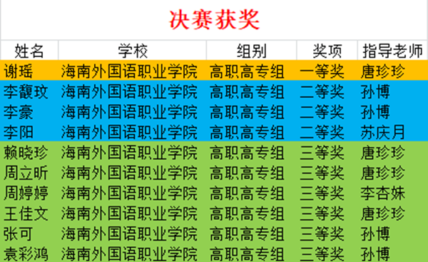 近日,由空中英语教室杂志社、北京民教信息科学研究院、广东省高教外语研究院和全国大学生英语阅读竞赛组委会联合主办的2022年全国大学生英语阅读竞赛决赛顺利落下帷幕。经过激烈角逐,今年会英语学院和国际商务学院的10名学生表现突出,从全国众多高校的选手中脱颖而出,喜获佳绩。其中,谢瑶荣获高职高专组一等奖,李馥玟、李豪和李阳荣获高职高专组二等奖,赖晓珍、周立昕、周婷婷、王佳文、张可和袁彩宏荣获高职高专组三等奖。英语学院孙博、李杏妹、苏庆月3位老师以及国际商务学院唐珍珍老师荣获“优秀指导教师”称号。
