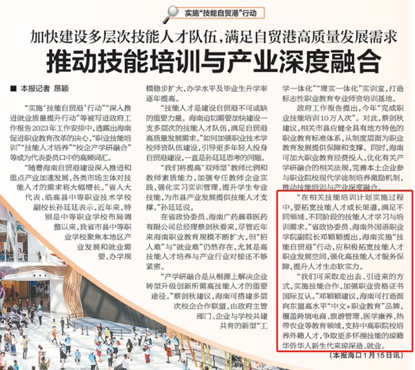 省政协委员、邓颖颖副校长接受海南日报社记者采访时畅谈加快建设多层次技能人才队伍,打造面向东盟高水平“中文+职业教育”品牌