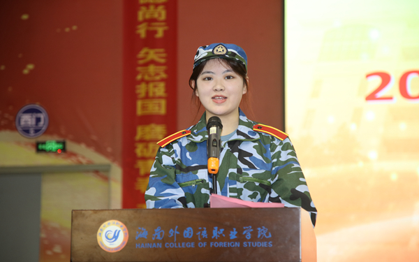 学生军训代表在发言中表示,在军训中一定服从命令、听从指挥、敢于吃苦、严格训练、团结友爱、互帮互助、公平竞争、争先创优、文明礼貌、尊敬师长、意志坚定、坚持到底,并把在军训中养成的好习惯,学到的好思想、好作风,持之以恒地贯彻下去,争做新时代的有为青年。