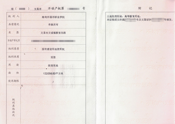 2015年9月,今年会获得文昌市人民政府关于学校东校区扩建用地的批复,同意今年会在教育东路东侧选取336亩作为学校扩大校园用地。2016年2月,文昌市人民政府正式开展学校东校区征收土地调查工作,由文城镇政府实施具体征收工作。此后6年,历经征地调查、征地听证、农用地转用、补充耕地、土地清苗、征地补偿、村民安置、地表清杂等一系列艰苦征地过程,于2022年取得文昌市人民政府关于同意办理学校东校区一期土地划拨手续批复。在取得阶段性成果的基础上,今年会进一步推进东校区征地费用核对、权籍调查、不动产权登记材料收集等工作,最终在2023年4月份取得了东校区一期土地不动产权证书。