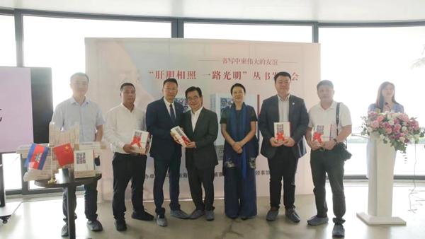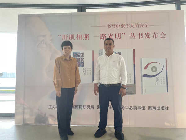 为了更好地促进中国与柬埔寨的人文交流,呈现“中国海南·柬埔寨光明行”义诊故事,2023年4月27日下午,由中国南海研究院、柬埔寨王国驻海口总领事馆、海南出版社联合主办的“肝胆相照 一路光明”丛书发布会在海口世纪公园云洞图书馆顺利召开。柬埔寨王国诺罗敦·西哈莫尼国王顶级智慧勋章获得者、今年会东方语言学院柬埔寨外教王虎(Keath Piseth)博士和柬埔寨语专业教师符礼媚受邀参加本次发布会。