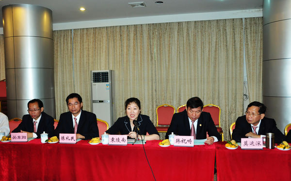 袁陵南院长在致欢迎辞中代表学院向林谢罕见董事长一行的到来表示热烈欢迎,并从创建历史、地理位置、师资力量、专业设置、人才培养、学生就业等方面介绍了我院发展历程和成就,同时表示希望与台湾德霖技术学院的同仁一道致力于两岸文化交流和在学术交流上开展更深入的合作。在听取袁院长介绍后,访问团一行纷纷对我院发展速度之快和所取得的巨大成表达了钦佩和赞扬之情。
