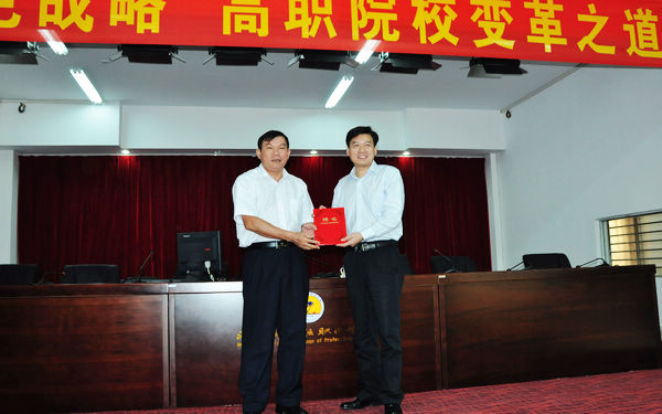 11月20日,国家示范性高职院校建设项目协作会副会长、中国高职教育研究会副会长、长沙民政职业技术学院党委书记罗志教授应邀访问我院,就高职院校改革之道等话题传经送宝。当天上午,罗志教授在学院图书馆多功能报告厅发表专题讲座,并接受我院诚挚邀请成为我院资深顾问。学院党委韩祝畴书记、袁陵南院长、陈礼民副院长、莫运深副院长及全体教职员工、部分学生聆听了讲座。袁陵南院长主持讲座。