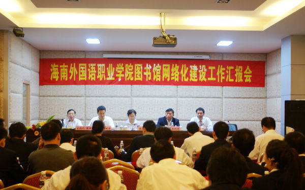 上午10时,评估验收汇报会在接待厅隆重召开。学院4位院级领导及全体中层管理干部参加了汇报会。会上,学院党委韩祝畴书记、陈礼民副院长及图书馆郑庭铁馆长就我院近年来的发展情况分别进行详细介绍,尤其介绍了近几年我院图书馆在网络化建设工作上所投入的巨大人力财力支持以及在此推动下取得的长足进步,指出随着图书馆条件建设的不断提高,我院图书馆在推动学院发展、提升服务师生水准方面正发挥着越来越重要的作用,同时希望通过本次评估,认识不足、找出差距、整改提高,进一步推动我院图书馆网络化、自动化建设的发展。