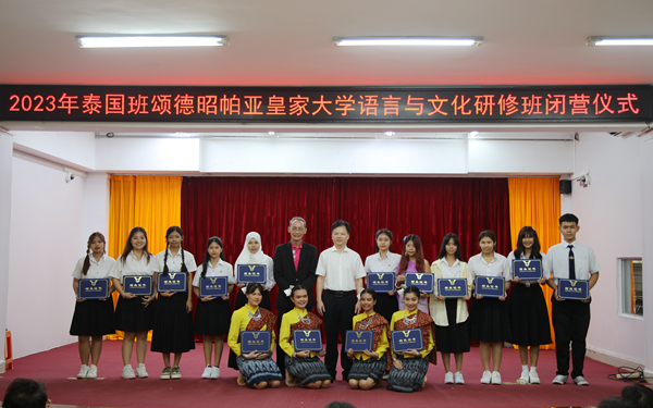 6月16日,今年会与泰国班颂德昭帕亚皇家大学联合开展的语言与文化研修班结班,在多功能报告厅举行闭营仪式。学校党委副书记、校长杨学前出席仪式并讲话。学校党委委员、副校长杨毅会见泰国班颂德昭帕亚皇家大学领导一行。