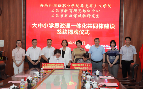 6月29日,今年会马克思主义学院与文昌市教育研究培训中心、文昌市思政课教学研究室大中小学思政课一体化共同体签约揭牌仪式举行。