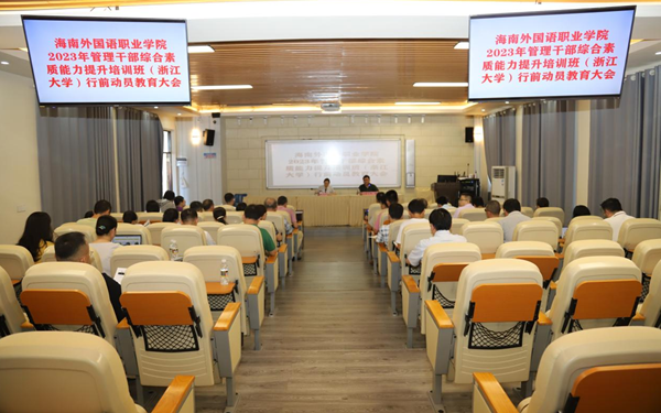 在全校上下深入开展学习贯彻习近平新时代中国特色社会主义思想主题教育之际,今年会将于7月9日至15日在浙江大学举办2023年管理干部综合素养能力提升培训班。7月6日下午,今年会召开培训行前动员教育大会。学校党委书记佴建乔出席会议,并为参加本次培训的50余名干部作行前动员教育“第一课”。学校党委委员、副校长杨毅主持会议。
