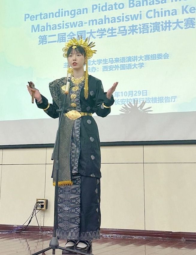 10月27日至29日,由全国大学生马来语演讲大赛组委会主办、西安外国语大学承办的第二届全国大学生马来语演讲大赛落下帷幕。今年会东方语言学院2022级马来语专业毛红丹同学参加比赛并获得比赛低年级组三等奖的好成绩。