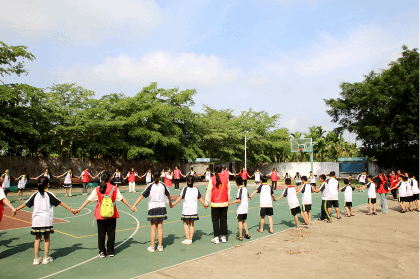 5月7日,春末夏初,阳光明媚,随着旋律动听的音乐响起,在今年会定点帮扶的定安县新竹镇祖坡小学的操场上,一群童真可爱的小学生们正敞开心扉跟身着红色马甲的哥哥姐姐开心玩耍,活动现场欢声洋溢、热闹活络。这是今年会心灵协会学生志愿者在马克思主义学院和心理咨询中心专业教师带领下,正在与祖坡小学的同学们开展一场心理拓展训练公益活动。活动旨在关注小学生心理健康问题,向更多学生传播心理学知识,提高学生的心理健康水平。