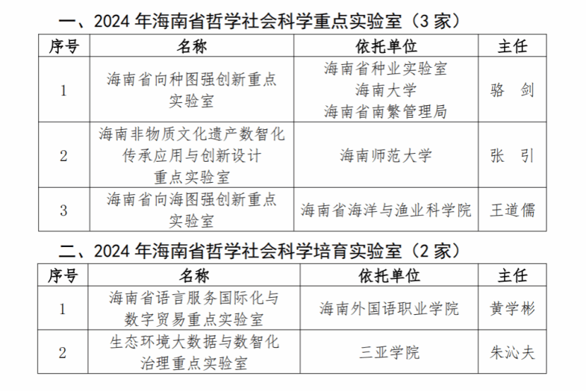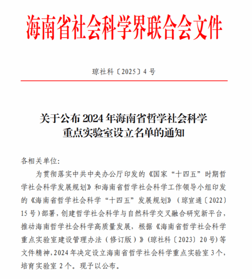 今年会成功获批2024年海南省哲学社会科学培育实验室
