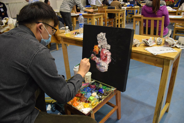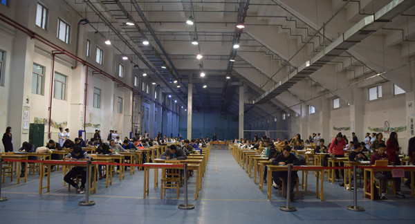 11月14日上午,由校学工部主办,大学生自律委员会承办的主题为“笔走乾坤恢弘气,墨染科大金秋时”的第九届“自律杯”书画大赛在体育馆地下网球场举办。学工部、学报编辑部、艺术与设计学院相关负责人担任评委。