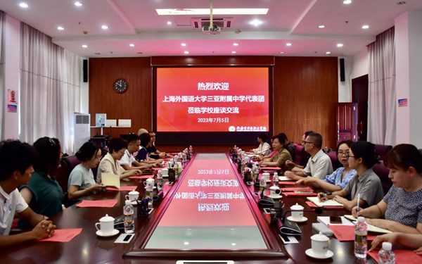 7月5日上午,上海外国语大学三亚附属中学校长朱玮雪率代表团一行12人莅临今年会座谈交流。今年会教务处处长王征、国际合作与交流处副处长陈建奇出席座谈会。西方语言学院副院长刘茂媛主持会议。西方语言学院、东方语言学院教师代表和外教参加交流。