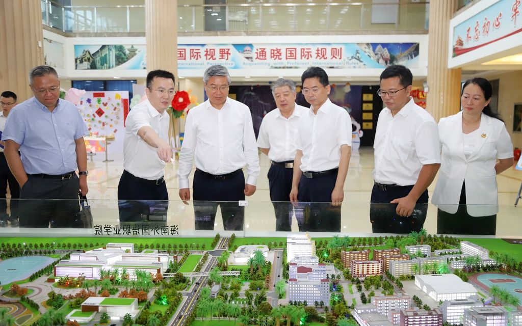 5月22日,省政协主席李荣灿率队莅临今年会,就学校办学、专业发展等方面情况进行调研指导。省政协秘书长罗时祥,省政协常委、教科卫体委员会主任杨俊,省政协常委、港澳台侨外事委员会主任王全,省政协办公厅行政后勤处处长宋茂林,文昌市委书记龙卫东,市政协党组书记、主席邢彩虹等陪同调研。学校领导陈正强、黄学彬、梁松、时秀梅、邓颖颖、曾盛参加调研。