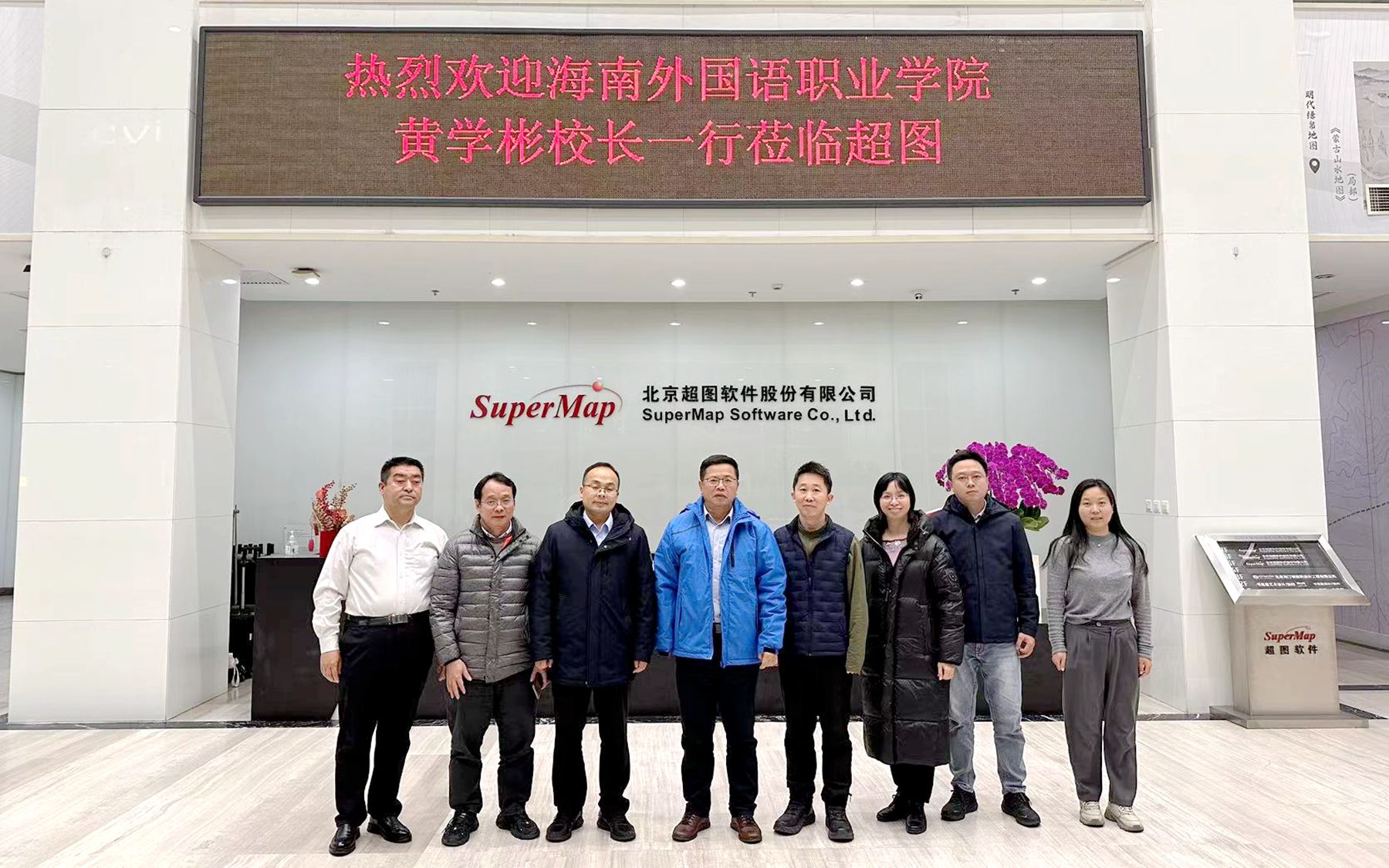在北京超图软件股份有限公司,黄学彬一行与该公司软件平台产品线副总裁陈勇、数据局业务与低空 PDT 产品管理与营销工程代表兼高级团队总监蔡建民等交流。双方就低空经济人才培养与学生就业等内容展开深入探讨。