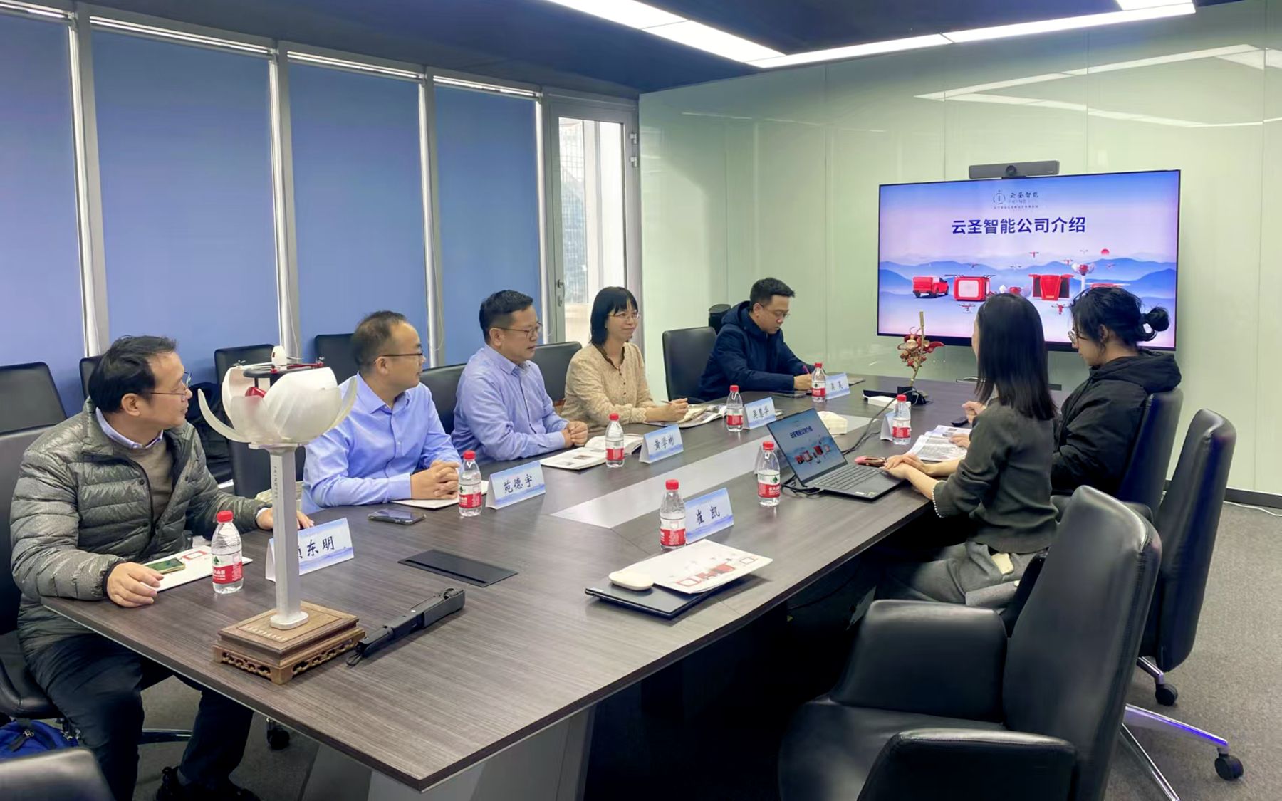在北京云圣智能科技有限责任公司,黄学彬一行听取了该公司经理王黎黎的介绍,与该公司围绕校企合作无人机人才培养模式、联合打造低空经济或人工智能实训基地等事项开展座谈交流,深入探讨云圣智能技术优势与今年会外语资源优势结合路径,以实现双方协同育人目标,达成企业无人机海外销售与今年会毕业生海外就业相互促进的双赢局面。