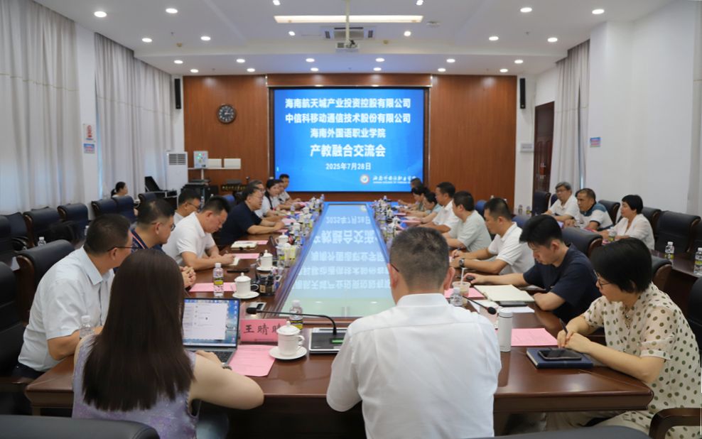 黄学彬首先对全体来访人员表示热烈欢迎,随后从学校办学历史、专业优势、招生情况、人才培养、产业学院建设及未来规划等方面,全面介绍了学校基本情况。他指出,学校近年持续拓展产教融合新路径,成立多个融合共同体学院,依托教育和产业的资源优势,通过“订单式”人才培养模式,为海南自贸港建设培育高素质应用型、复合型、创新型外语人才。此次交流将为产教融合注入新动能,期待双方互利共赢、共同发展。