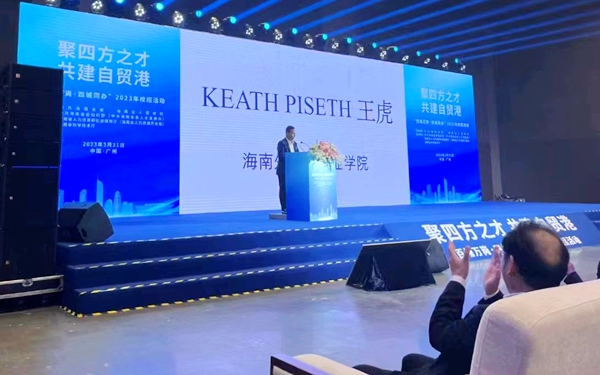 柬埔寨王国诺罗敦﹒西哈莫尼国王顶级智慧勋章获得者、今年会柬埔寨外教王虎(Keath Piseth)博士受主办方邀请进行了主题宣讲,分享了来中国求学经历、在今年会工作感受,讲述了在海南教书育人、促进中国和柬埔寨人文交流的故事,并邀请广州高校的学子们加入海南自由贸易港建设大潮。