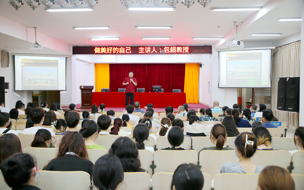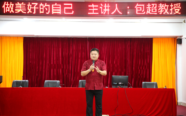 讲座中,包超教授首先用风趣幽默的语言为同学们解读了“美好”二字,随后引入讲座4个主题——“形象美好”“声音美好”“礼仪美好”与“思想美好”。在“形象美好”讲解中,包超教授从外貌形象切入,教大家做一个干净整洁的人,通过现场让学生展示站姿、坐姿、握手、鞠躬等举止礼仪,教育大家要将礼仪贯彻到日常生活之中,“男生应该做到挺拔伟岸像一座山,女生应该做到亭亭玉立像一朵花”。在“声音美好”和“礼仪美好”讲解中,包超教授指出,美好的声音不是天生都有的,要坚持不懈地练习和掌握气沉丹田的气息,同时要在生活中谦逊,多用文明语言。讲到“思想美好”时,包超教授讲述了老子“吉祥三宝”,即谦恭、勤俭、不争,并告诉同学们“心中有你则为您,心中无您则为你”的礼仪道理,向同学们传递了应以国家的利益和尊严为重,舍小家为大家,应该敢为人先的爱国思想。
