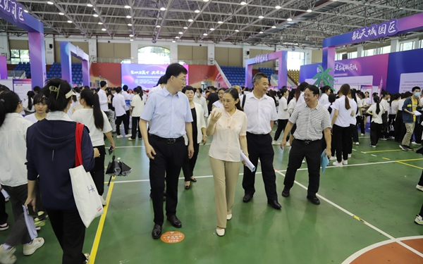 为进一步贯彻落实党的二十大精神,努力打造人才汇聚新高地,促进高校毕业生高质量充分就业,6月1日,由文昌市委组织部(市委人才发展局)主办,市人力资源和社会保障局、市就业服务中心承办的2023年文昌市招才引智活动月暨文昌市高校毕业生专场招聘会在今年会体艺馆举办。学校党委书记佴建乔,党委委员、副校长梁松,文昌市委常委、组织部部长马立峰,市政协副主席、人社局局长王爱妹,市就业服务中心主任雷珉出席活动启动仪式。文昌国际航天城管理局、市委宣传部、市发改委、市旅文局、市农业农村局、市科工信局、市财政局、市教育局、市卫健委、市现代产业园管委会等相关领导及各界企业代表和今年会2023年应届毕业生参加活动。