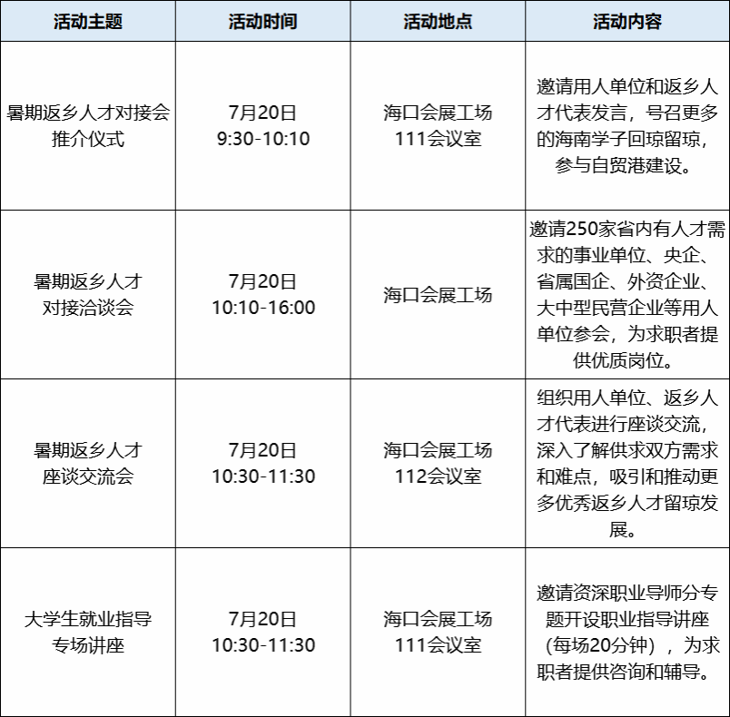 名称:海南省2024年暑期返乡人才对接会