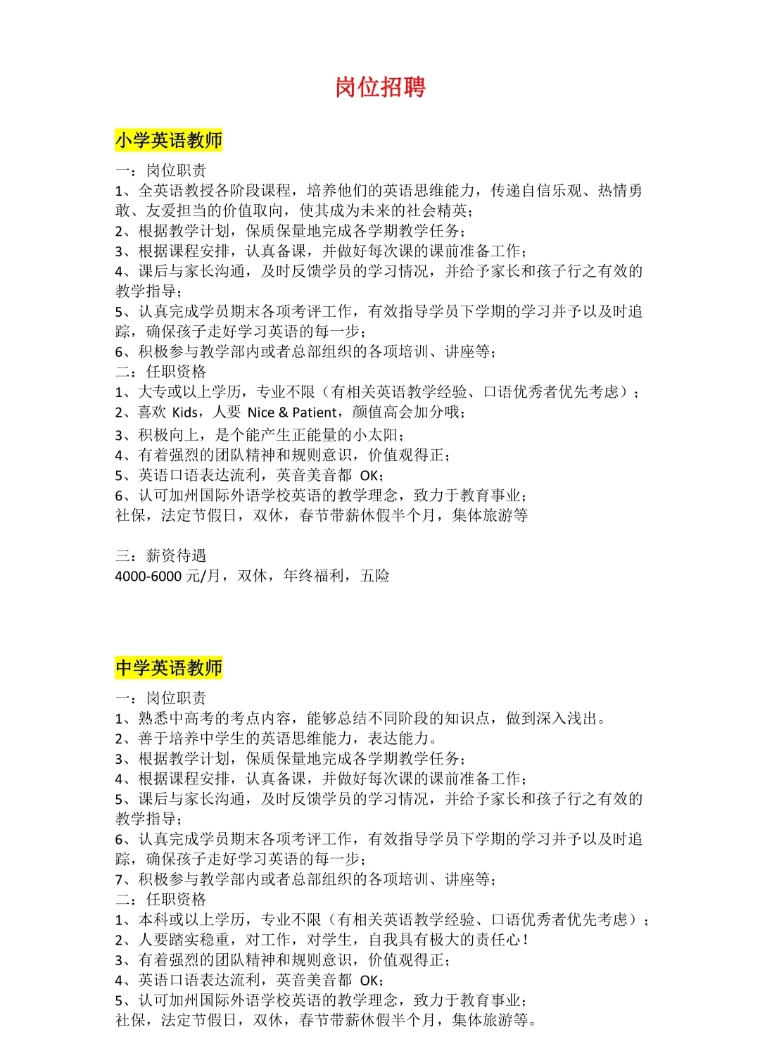 招聘信息 当前位置: 首页 >> 招聘宣讲 >> 招聘信息 >> 正文 招聘信息 | 加州国际外语学校招聘 发布日期:2020-08-10 点击: (温馨提示:新型冠状病毒肺炎疫情期间,请往邮箱投递简历。在未被进一步通知的情况下不要擅自前往应聘单位。招聘公司地址仅以本网站为准,请同学们面试时注意核对。) 上一篇:2020年普通高等学校毕业生应征入伍公告 下一篇:招聘信息 | 海南志晨职业培训学校有限公司