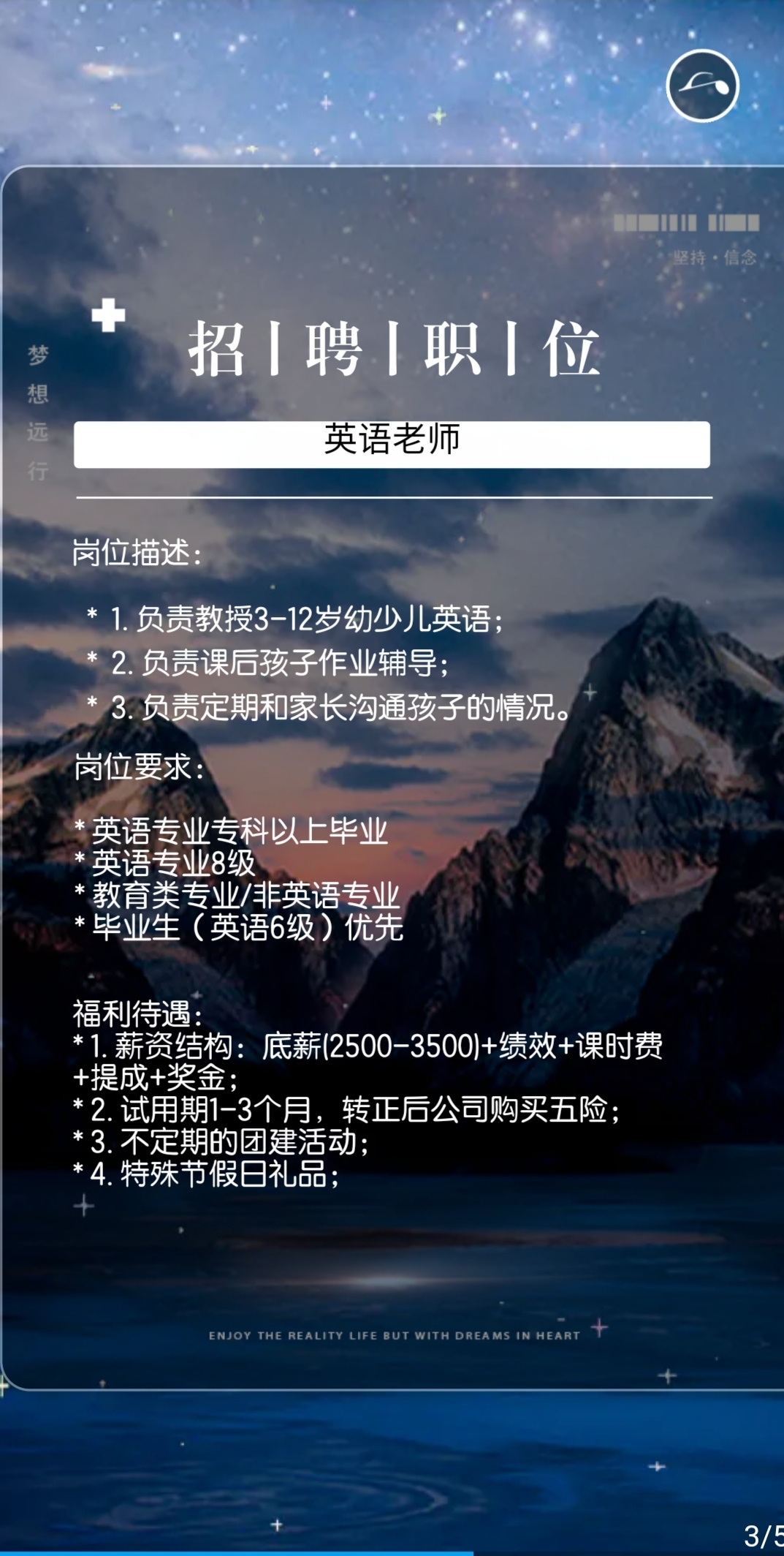 招聘信息 当前位置: 首页 >> 招聘宣讲 >> 招聘信息 >> 正文 招聘信息 | 仨人行英语教育招聘 发布日期:2020-07-06 点击: 上一篇:招聘信息 | 海口会展工场管理有限公司 下一篇:招聘信息 | 海南志晨职业培训学校有限公司